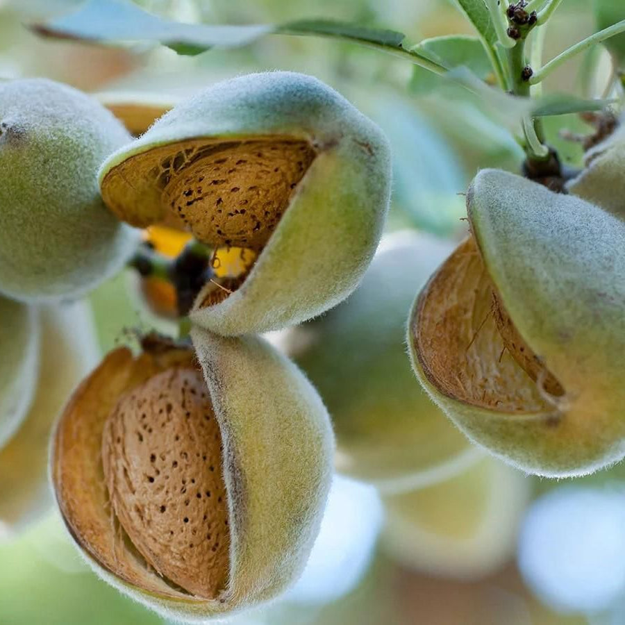 Se recoltează în lunile august-septembrie, când coaja fructului devine uscată și migdalele pot fi ușor extrase.